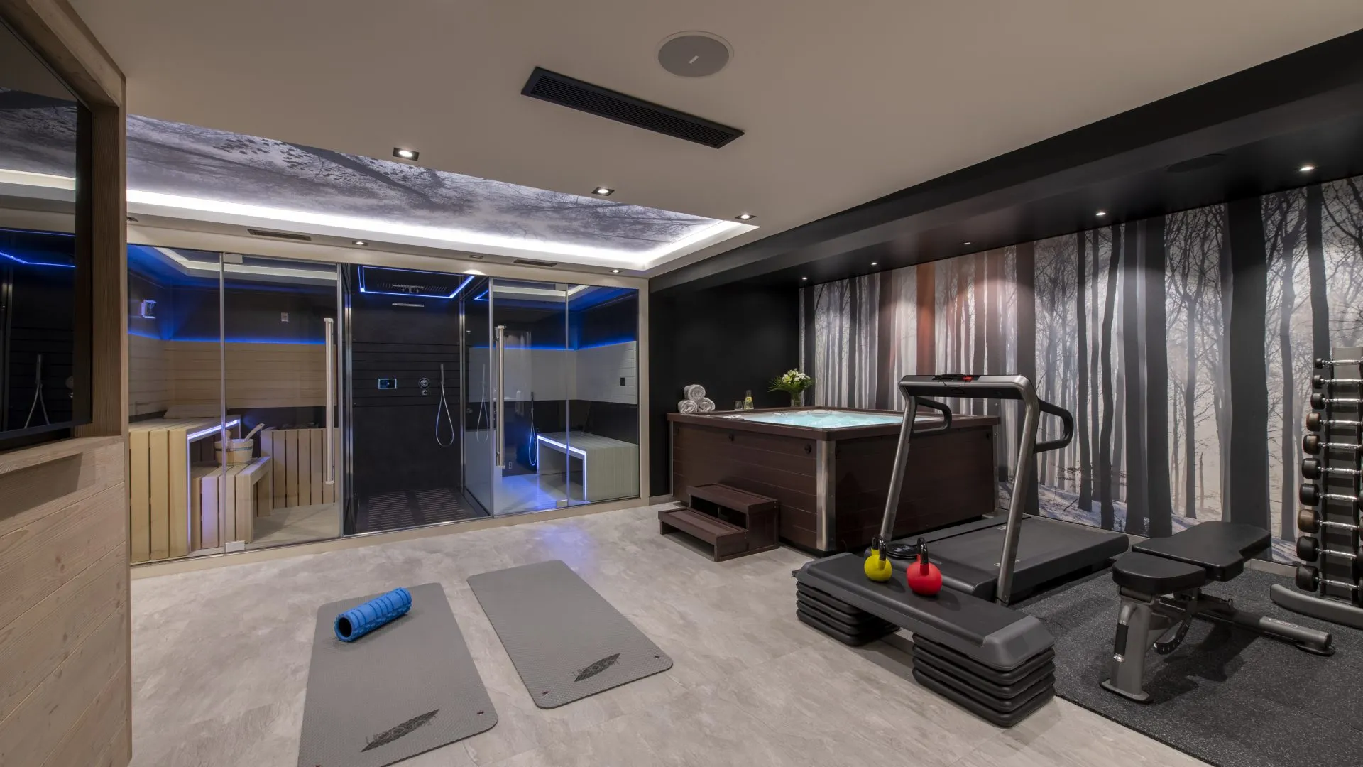 Warm up in the spa and gym after days spent in the elements. Equipped with calming and sensitive lighting, here you’ll find an indoor hot tub to soak in, as well as a luxurious hammam and sauna, a tranquil massage room and professional gym equipment at your disposal. Also on this floor is the second cozy TV room, so that children can become absorbed in their favourite movie whilst adults entertain upstairs.