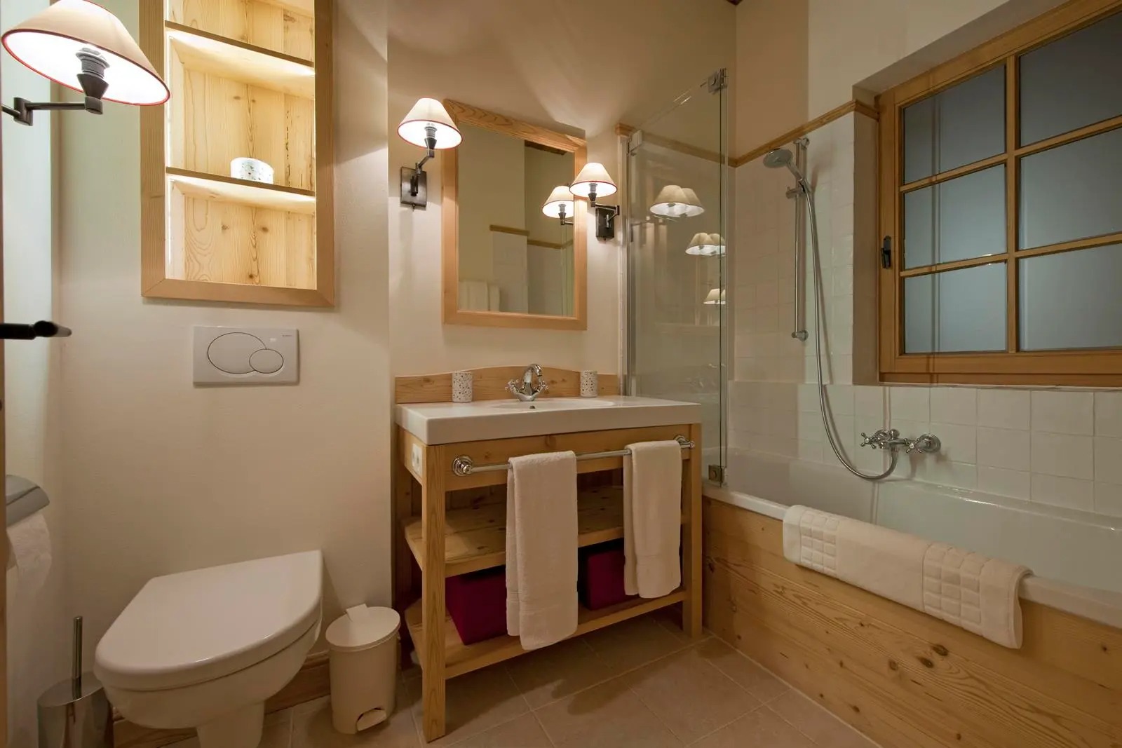 A small laundry room with washer and tumble dryer is also located in the apartment and the property has a ski locker and boot heating room, which is shared with the other three apartments. In addition, guests have access to the wonderful spa area on the lower ground floor. There is a sauna, hammam, shower, and a relaxation area.