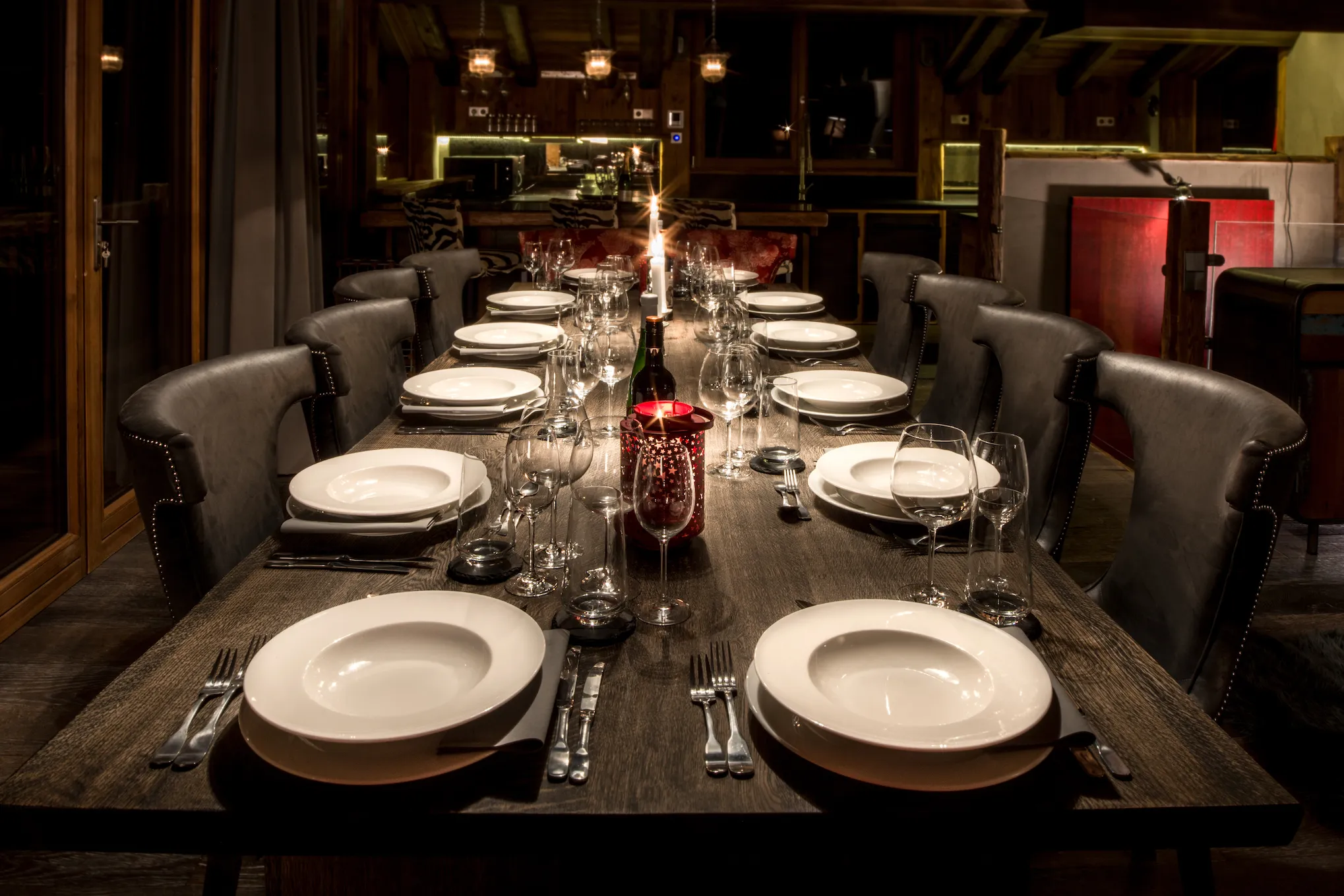 Evenings in Dulcis Casu have a luxurious but relaxed vibe with twinkling candles, soft leather sofas and the log fire burning in the centre of the magnificent double-height living room. Enjoy a glass of bubbles and take in views of the pristine snow-clad peaks of the Grand Bec whilst your talented chef prepares a memorable dining experience.