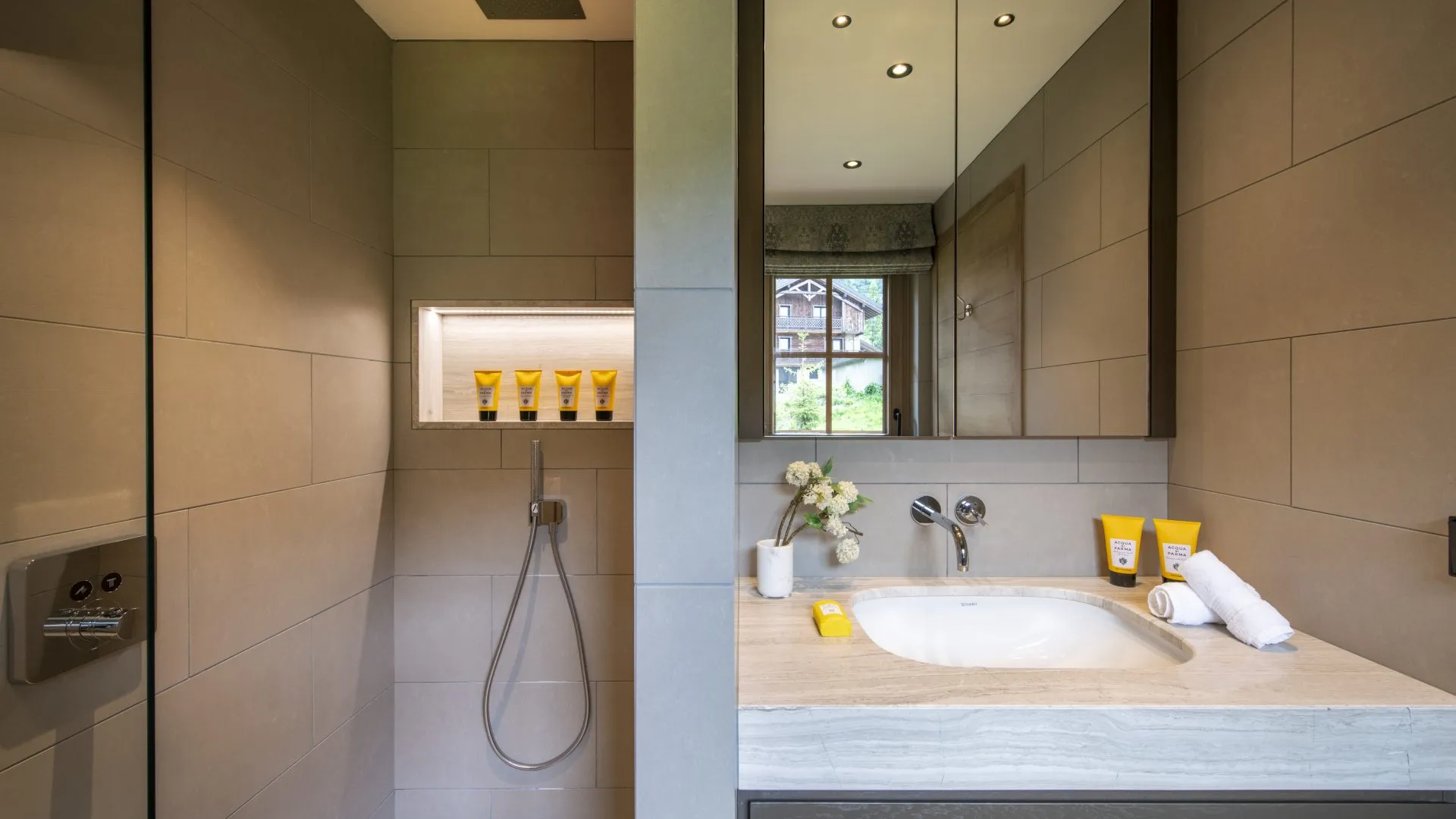 Accommodating up to 16 guests across four thoughtfully designed floors, the ground level welcomes you with ski storage, heated boot warmers, and an indulgent private cinema room with bespoke electric reclining seats. Your wellness sanctuary features a traditional hammam, spa shower, massage treatment room, and eight-person hot tub accessed via a heated outdoor path—the perfect après-ski haven.