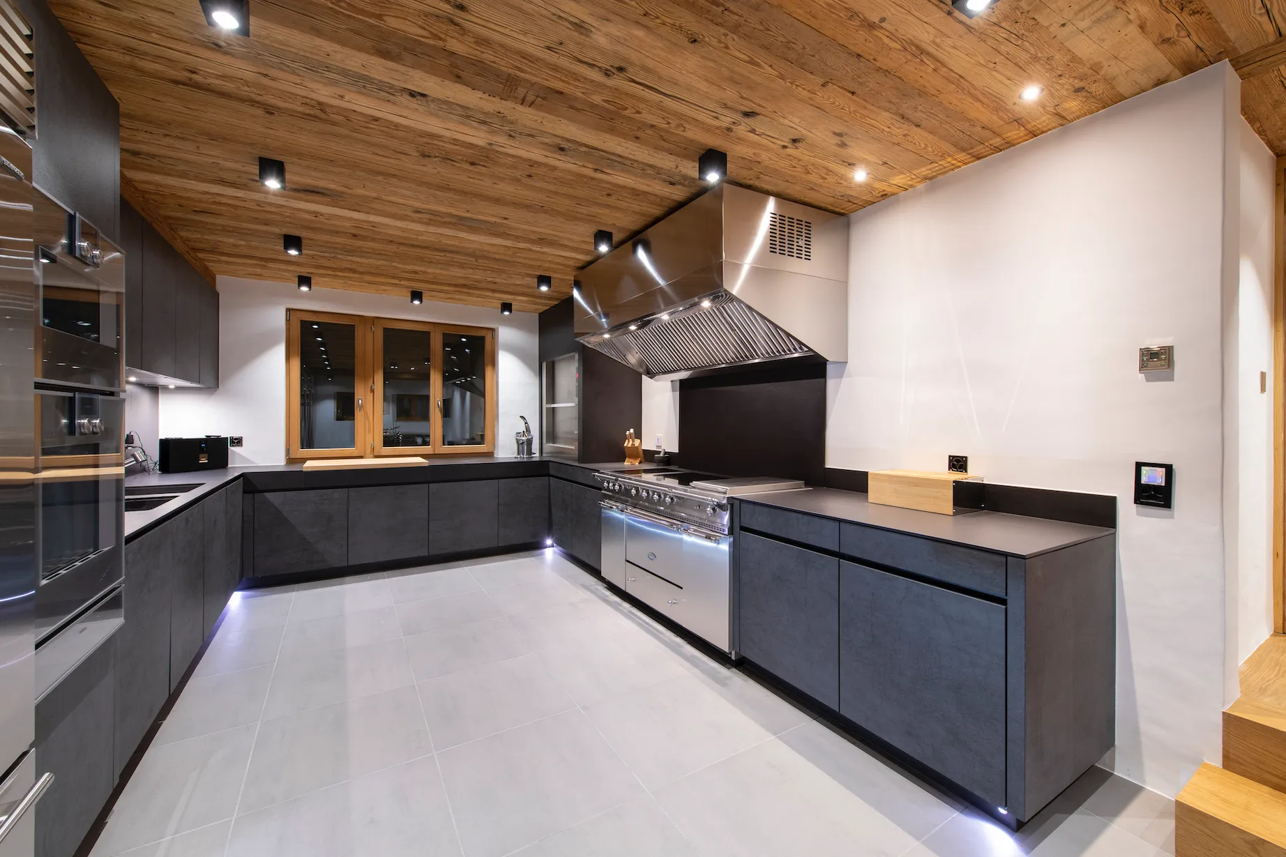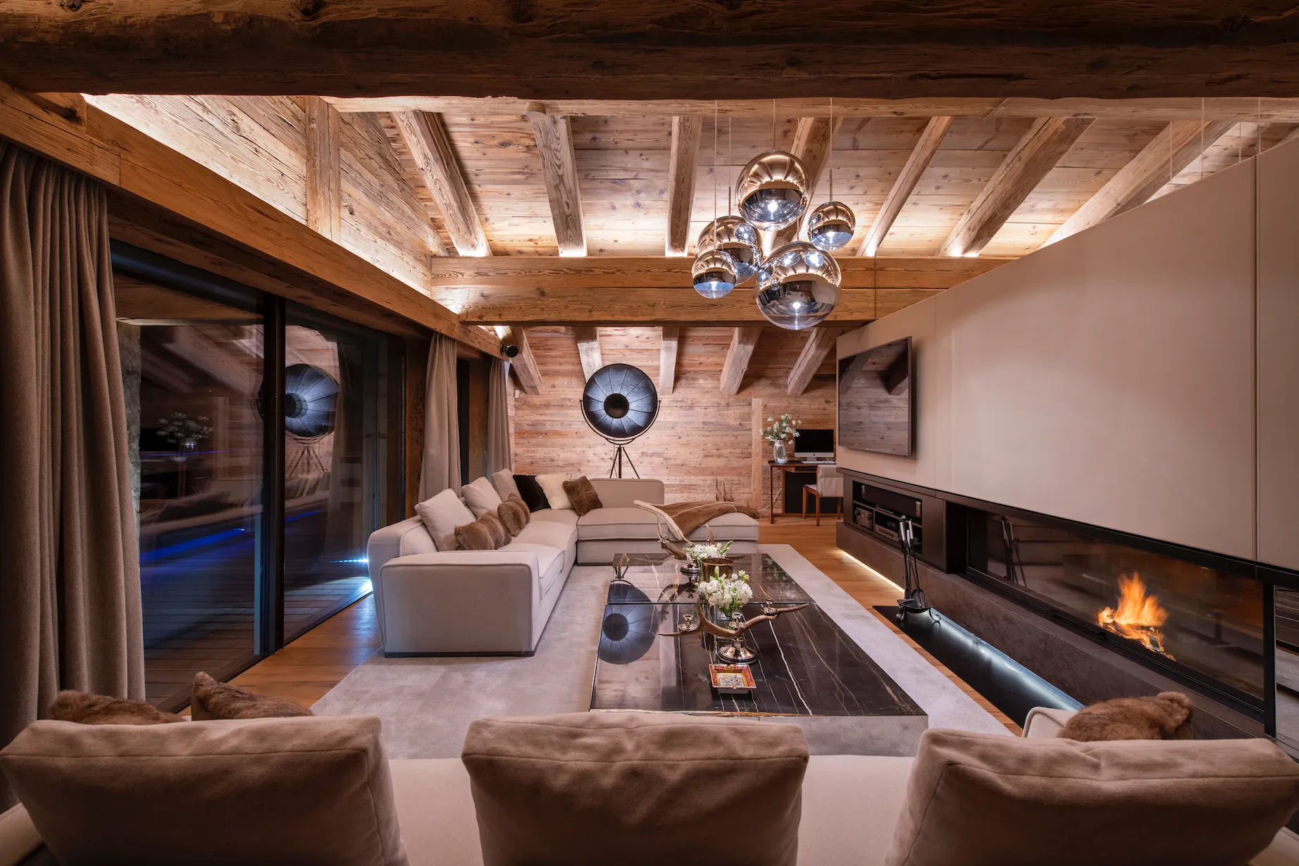 Chalet Marmottière is a luxurious, unique and modern property. The interior is incredibly spacious, bathed in natural light with heavenly views of the mountains from the floor to ceiling windows. Using a perfectly blended mix of natural materials and modern bespoke design and furnishings, the interior creates a dramatic and sophisticated atmosphere.