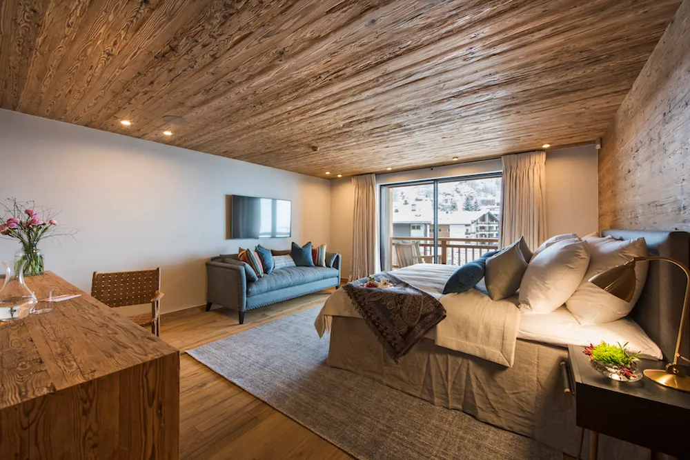 The first floor sets the scene of a tranquil mountain sanctuary. There is a simplicity in design which is perfectly harmonized with cosy, alpine inspired features. There are three double bedrooms, all with en-suite shower rooms. Two of the bedrooms have small dressing rooms, and all feature private balconies which open up to the wonderful views of Zermatt. A small staircase from this floor leads to the playroom which has an impressive revolving TV, day beds and separate shower room.