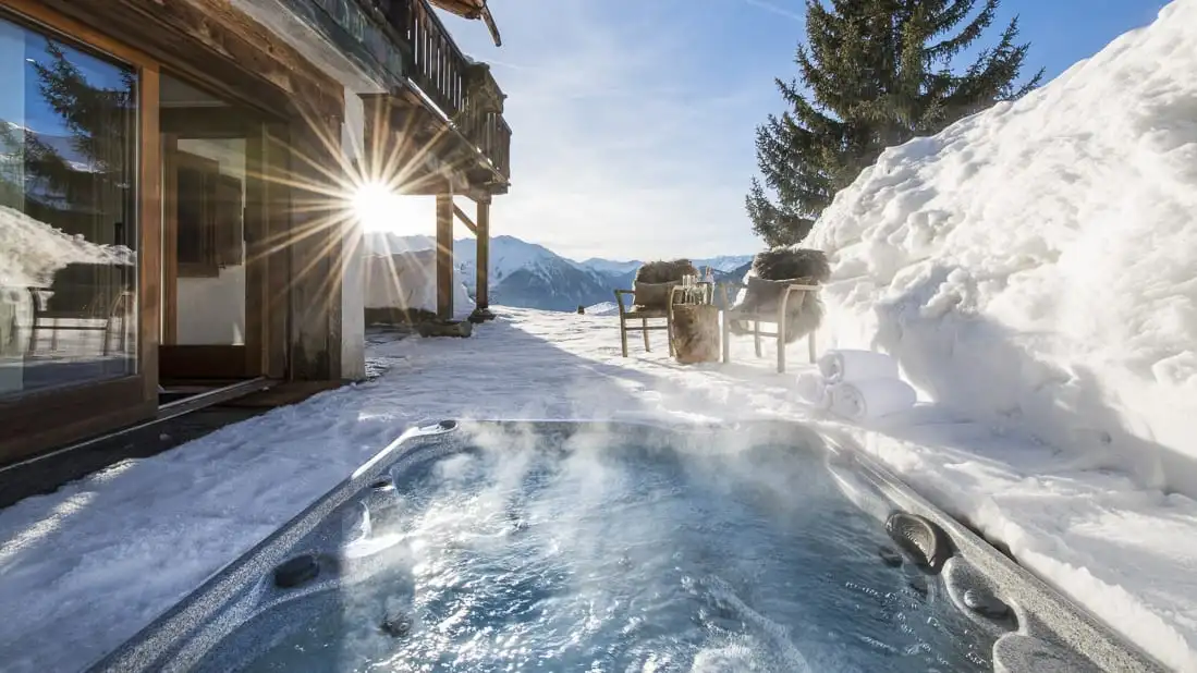 There is an extensive balcony that runs the length of the chalet and a hot tub has been carefully positioned in a completely private position yet takes advantage of the stunning views. Chalet Milou has a yoga/treatment room and a steam room with private shower.