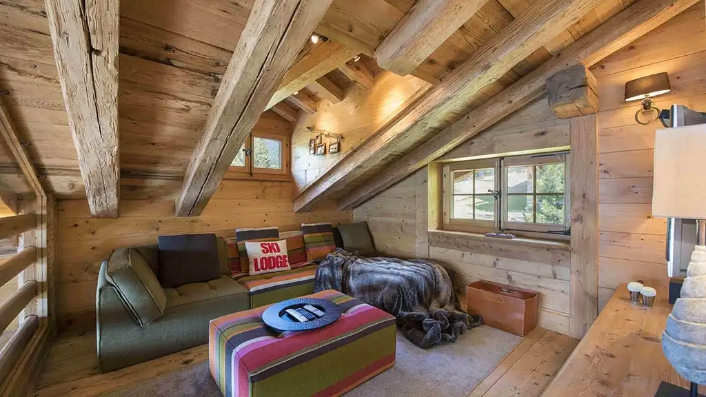 In addition, there is a second large sitting room, which is ideal for teenagers or children to escape to. This room also benefits from the amazing views and is open to the eaves. It can be reached via the ground floor or by crossing the outdoor terrace. The chalet also has an internal garage.