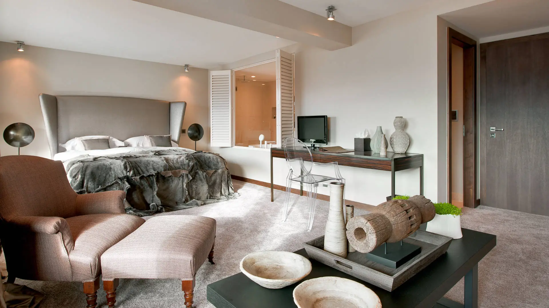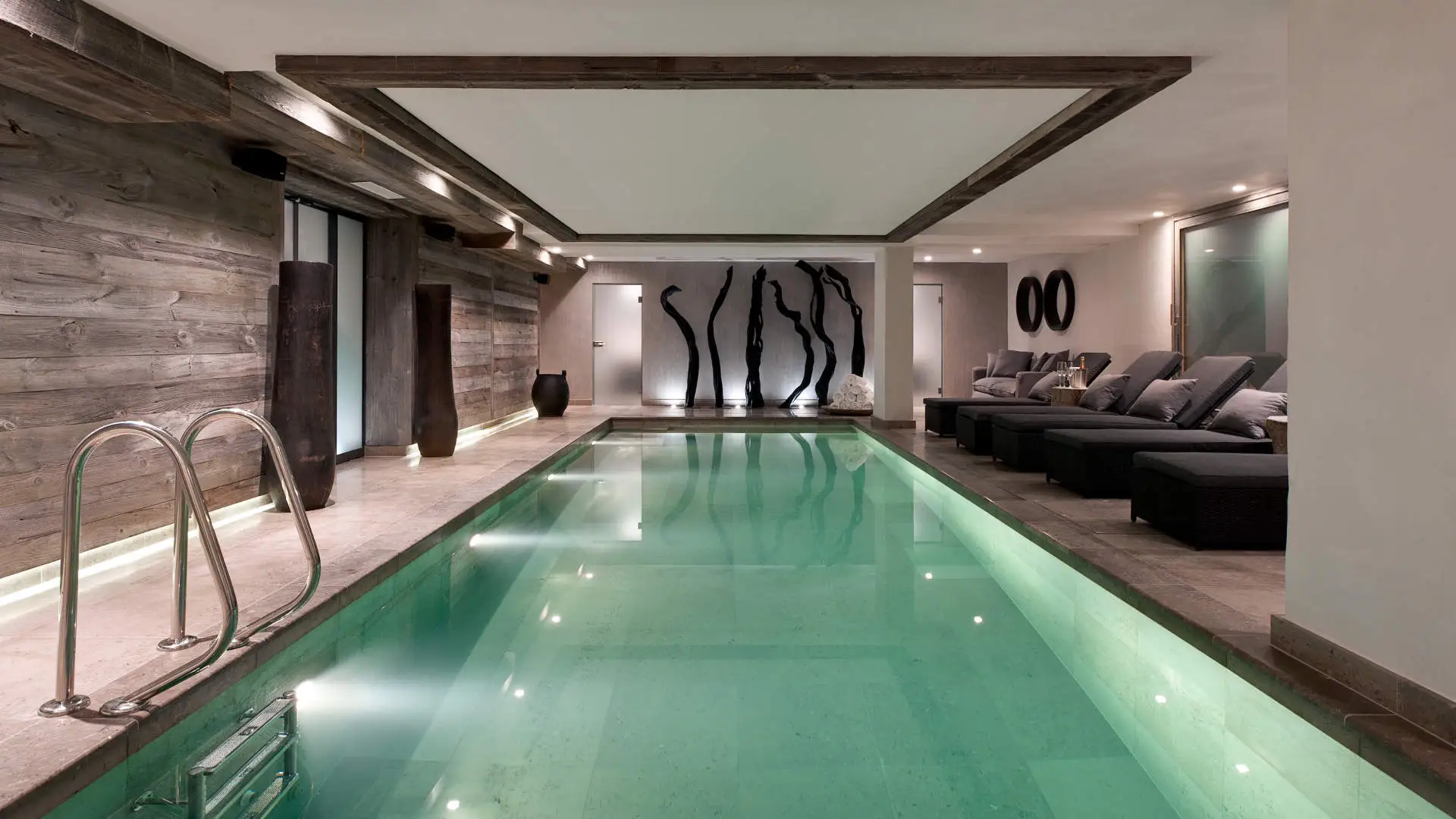 One of the highlights is the spa, which has a 10-metre pool, steam room, cold plunge pool, Jacuzzi and two treatment rooms. Outside, an expansive decked terrace is the perfect place to admire the views of the Combin Massif, either from one of the comfy sun loungers or from the warmth of the large cedar hot tub – glass of vintage champagne in hand!