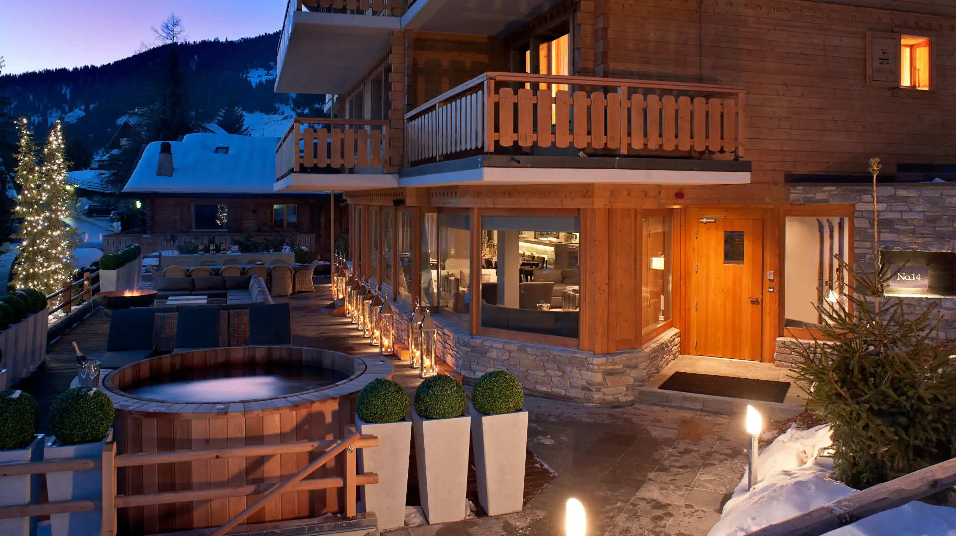 Owned by David Pearson, this former hotel recently underwent an extensive transformation and refurbishment. The result is one of stylish, contemporary alpine chic, complimented by the highest quality fixtures and fittings, with all furniture custom-made in London. With over 1000m2 of living space and 13 en suite bedrooms, No.14 is perfect for special occasions extended families and corporate groups.
