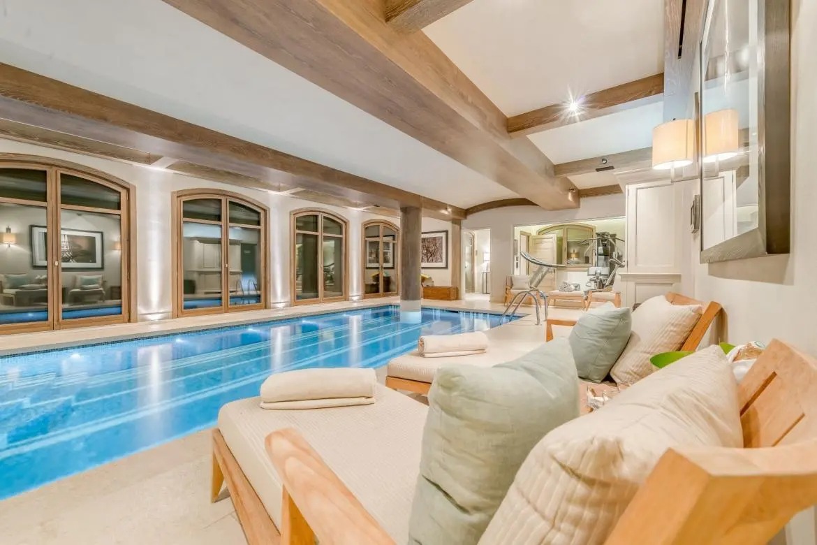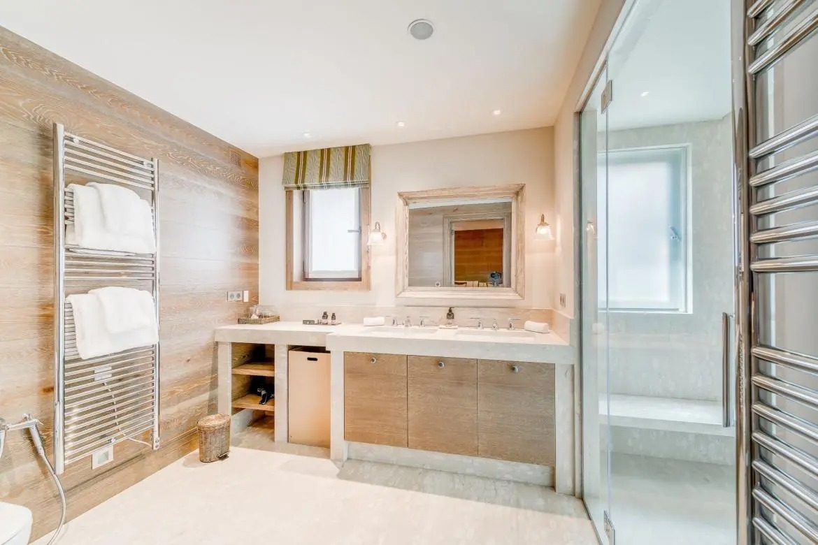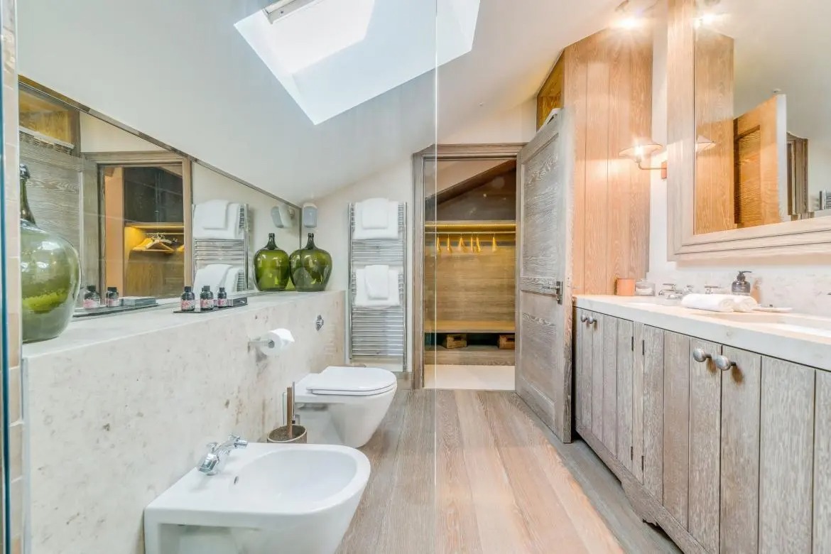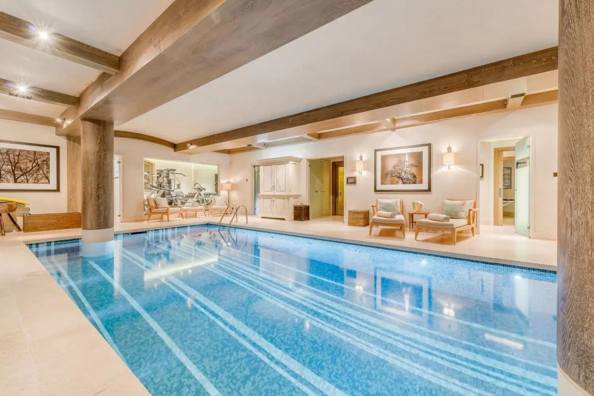Shemshak sleeps 8 adults in 4 en-suite bedrooms and up to 2 adults and 3 children in an en-suite family bedroom. This luxury chalet is Alpine chic at its best, with furnishings and materials brought together by a top London interior designer. Bringing you an entire floor dedicated to your wellness and relaxation, Shemshak features a large heated swimming pool with panoramic views of the valley, a separate Jacuzzi, sauna, Hammam, massage room and your own state of the art gym.